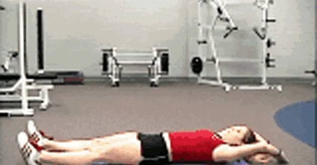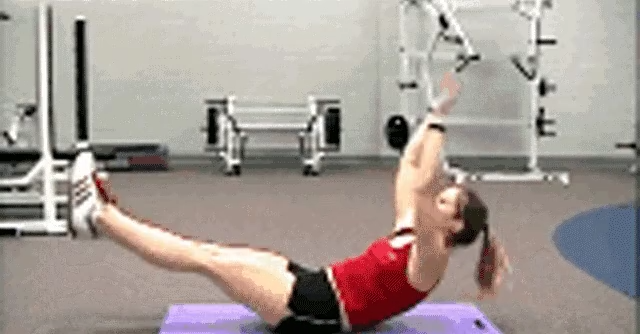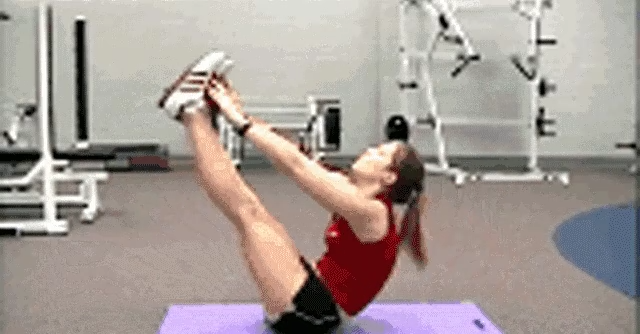Lie on your back on the mat, legs curved up into 45 degrees, contract the abdomen, legs and head at the same time to the abdomen, tighten, in the legs and head leaning closest to stay about 1 second, pay attention to the head do not touch the ground.