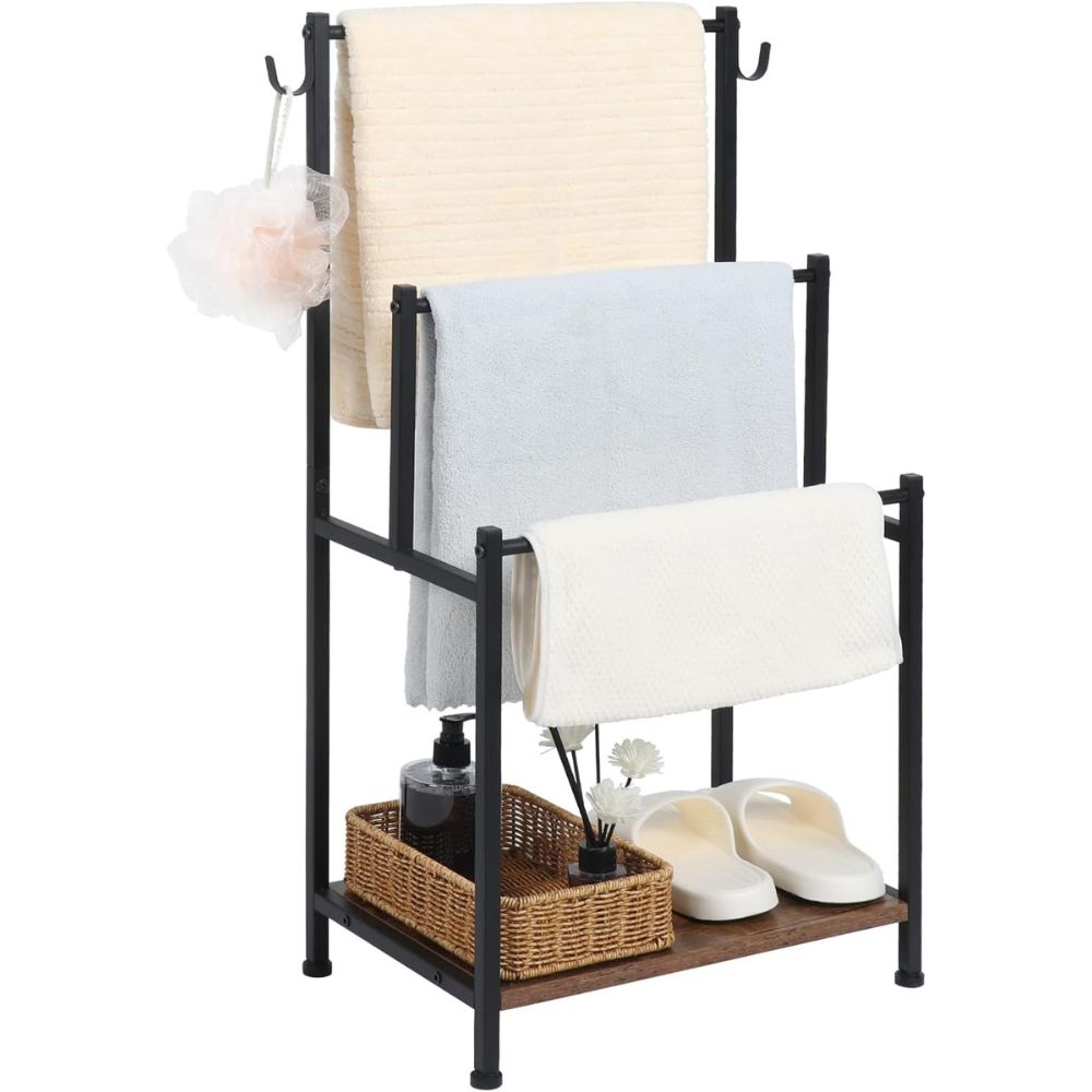When the original furniture is not enough, you can use the standing towel rack to increase the storage space.No drilling or mounting to the wall is required, making it easy to access your everyday items and keeping your home clutter-free.