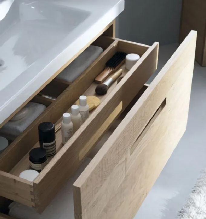 "Drawer in the drawer" that the drawer is also set up a small drawer, also known as the inner drawer. If it is customized bathroom cabinets, can be required in the design of an additional internal drawer, separated from the internal drawer can usually be used to place jewelry, powder, nail polish and other small things, to open up more storage space.